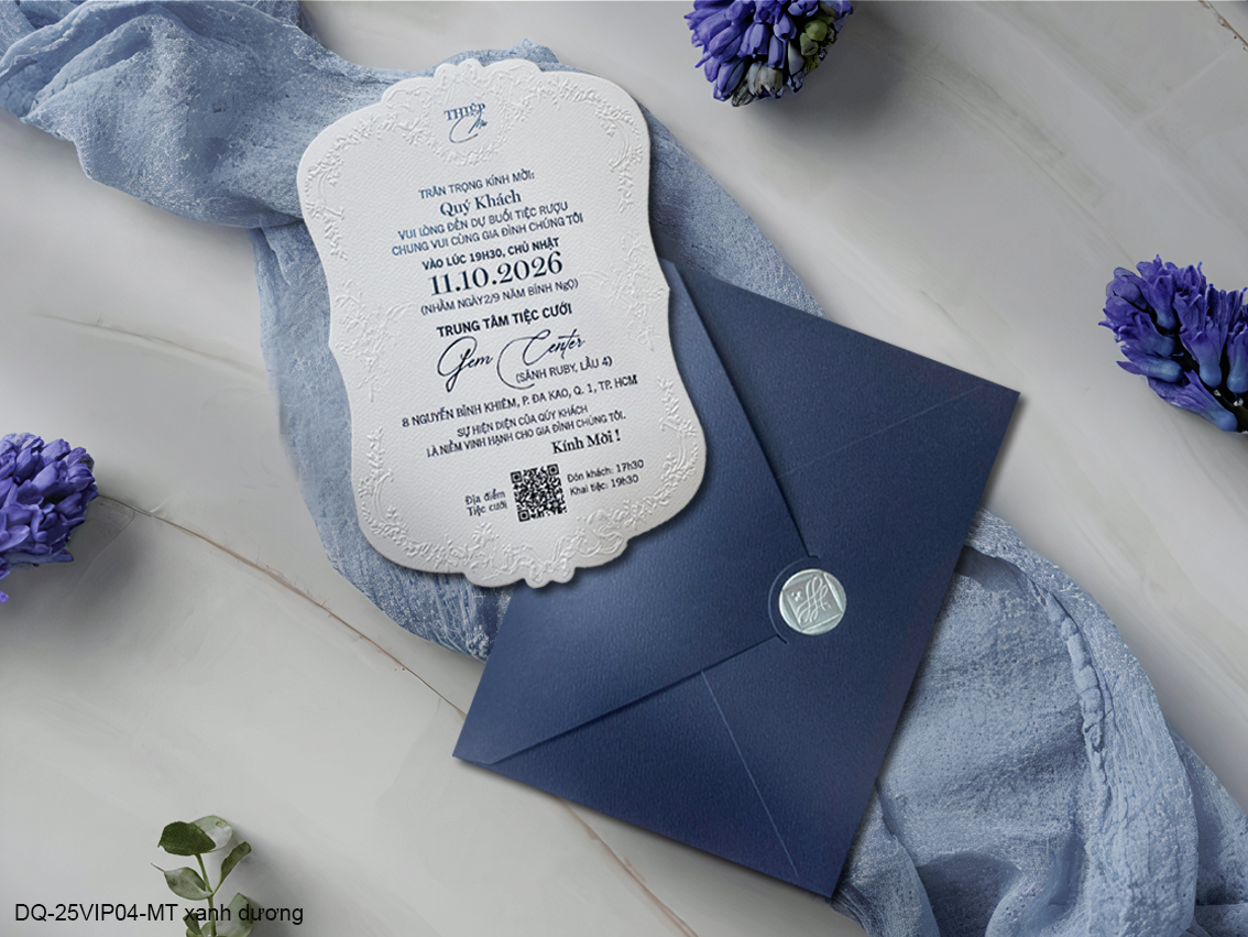 THIỆP CƯỚI 25VIP04 - MT xanh dươngÁp dụng số lượng trên 200 bộ