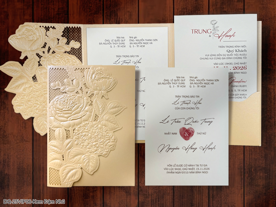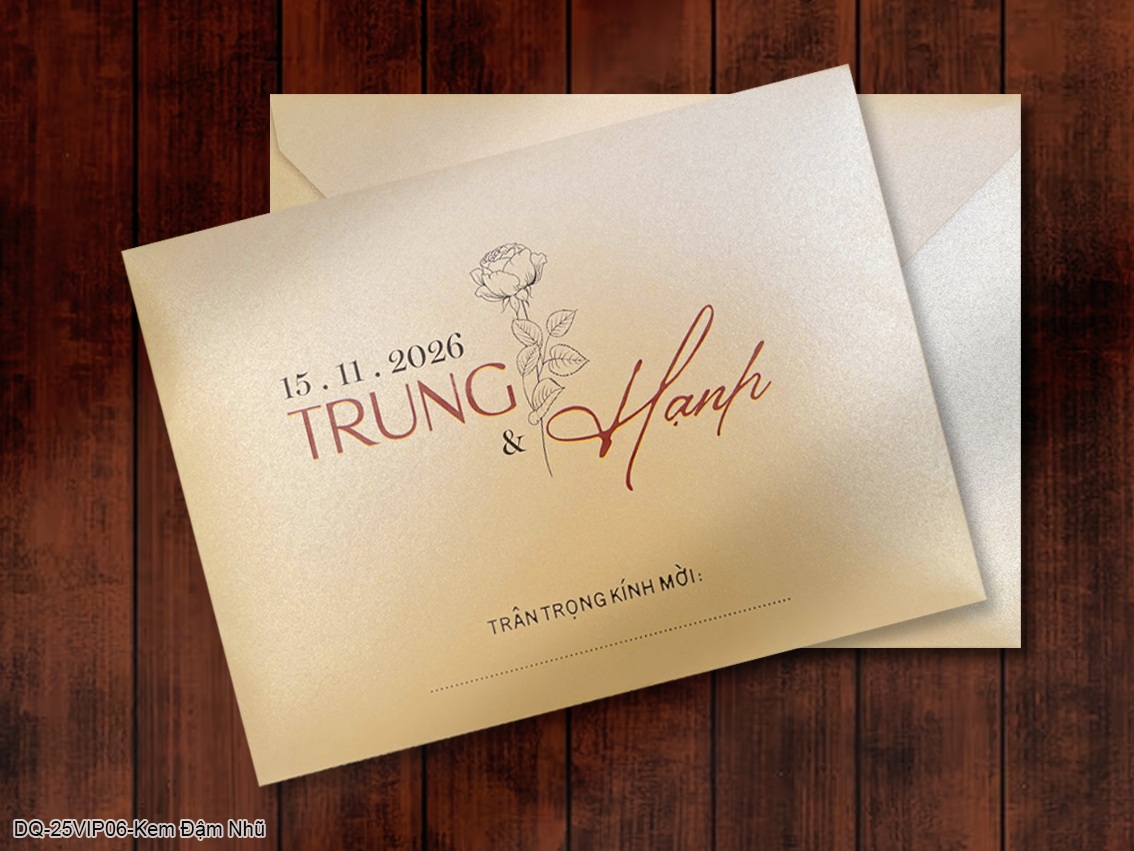 THIỆP CƯỚI 25VIP06 - Kem đậm nhũÁp dụng số lượng trên 200 bộ