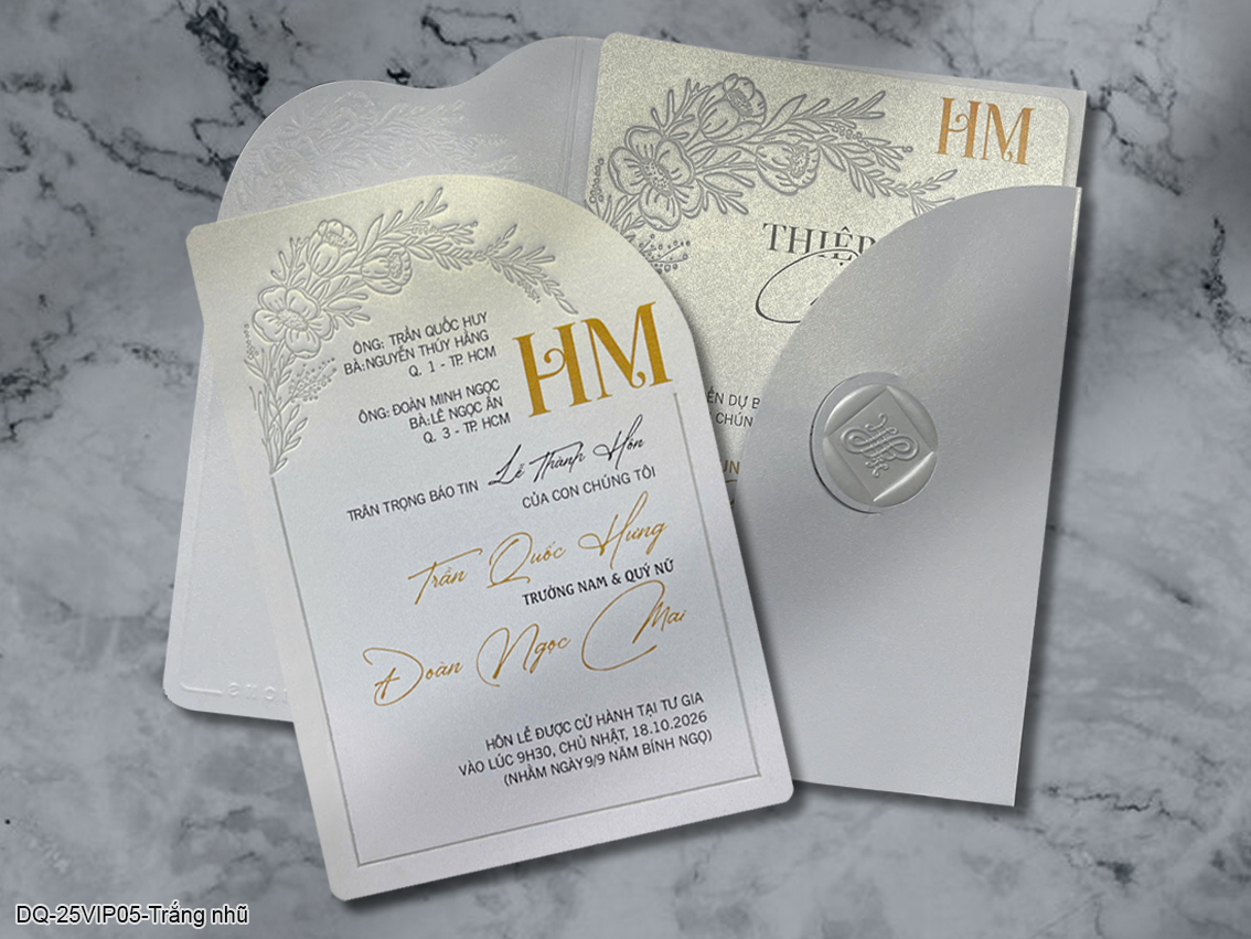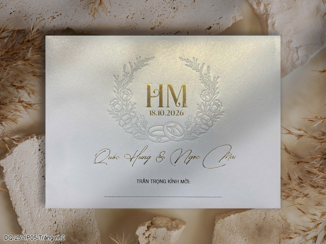 THIỆP CƯỚI 25VIP05 - Trắng nhũÁp dụng số lượng trên 200 bộ