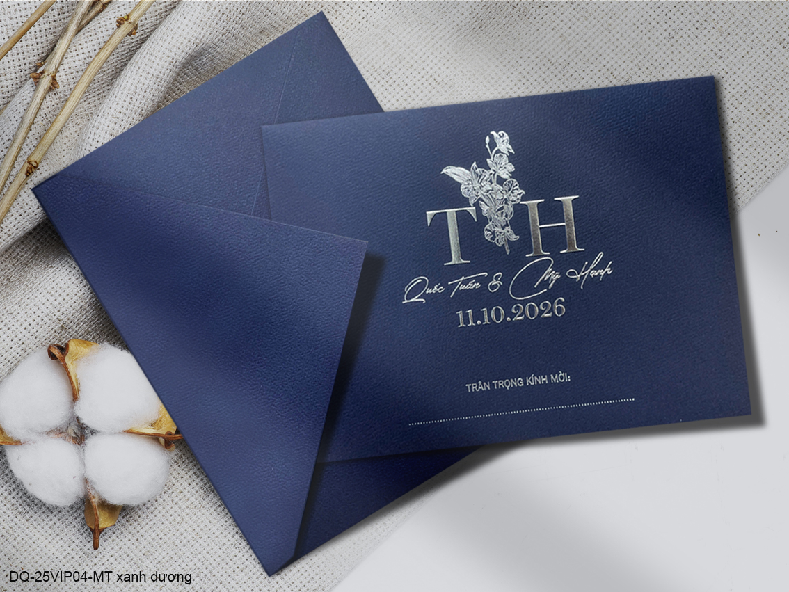 THIỆP CƯỚI 25VIP04 - MT xanh dươngÁp dụng số lượng trên 200 bộ