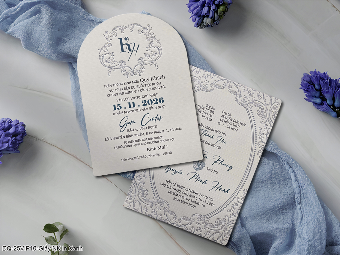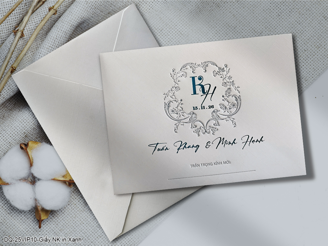 THIỆP CƯỚI 25VIP10 - Giấy NK in xanh