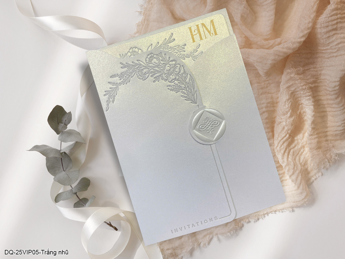 THIỆP CƯỚI 25VIP05 - Trắng nhũÁp dụng số lượng trên 200 bộ