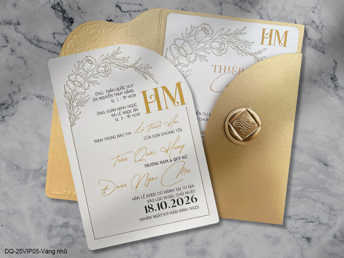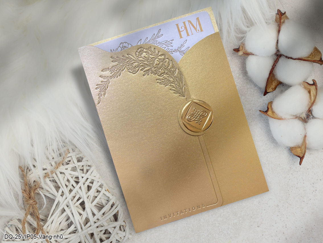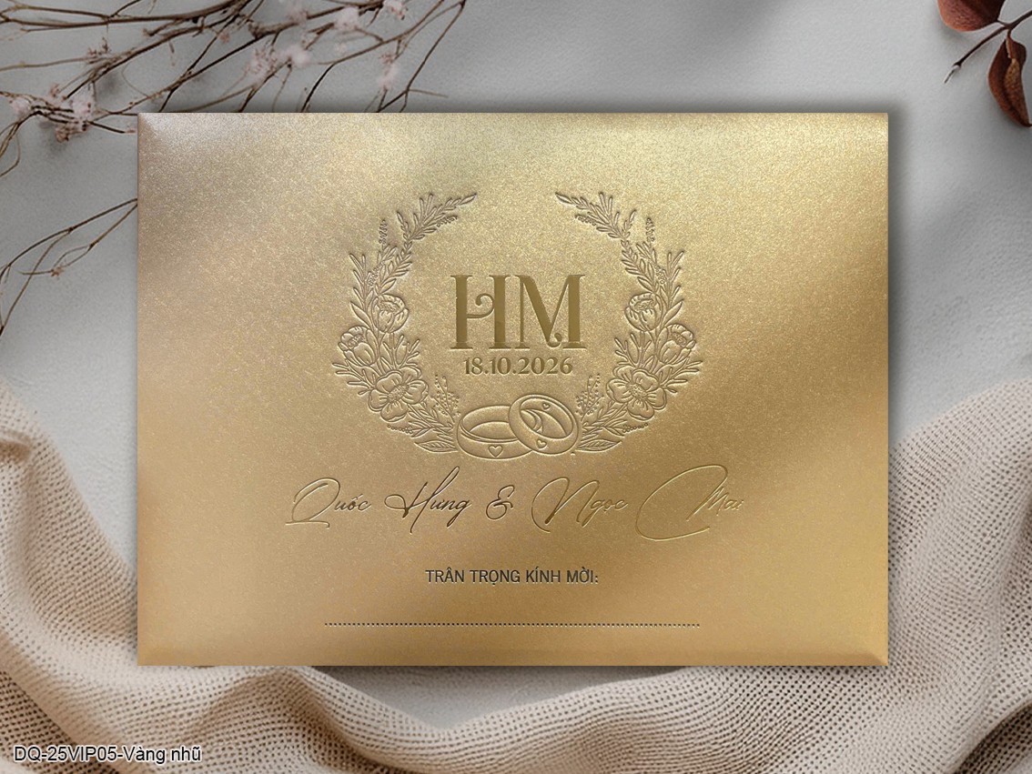 THIỆP CƯỚI 25VIP05 - Vàng nhũÁp dụng số lượng trên 200 bộ
